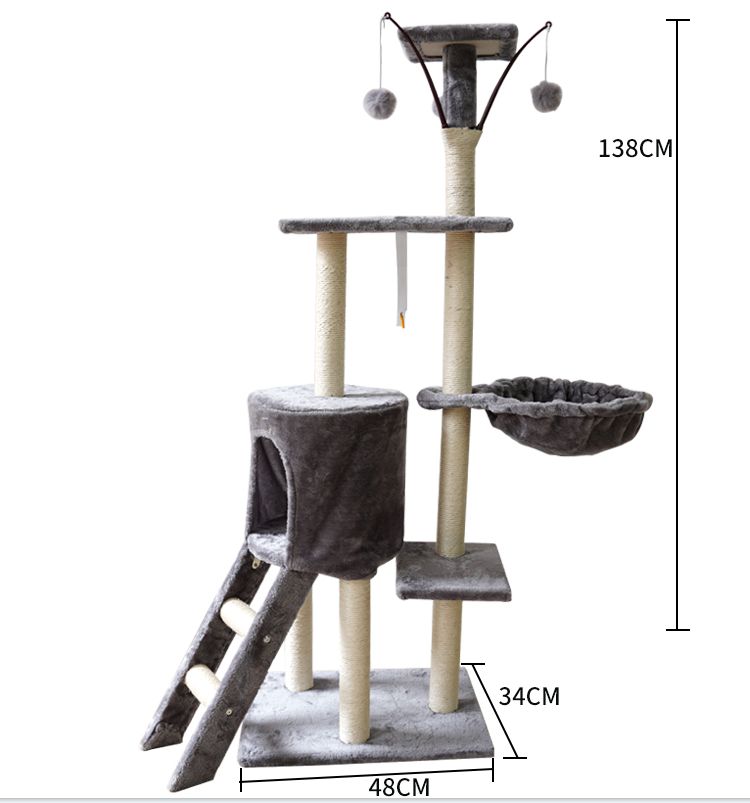 Grebalica za mačke sa merdevinama Siva 48x34x138 cm